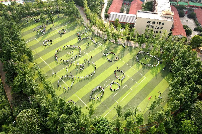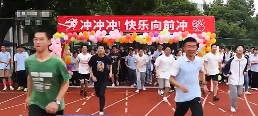 6月5日,浙江宁波市宁海县知恩中学组织学生开展运动会减压迎高考。(图片来源:央视新闻截图)