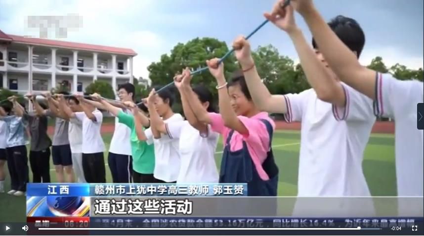 江西赣州市上犹中学组织学生做游戏减压。(图片来源:央视新闻截图)