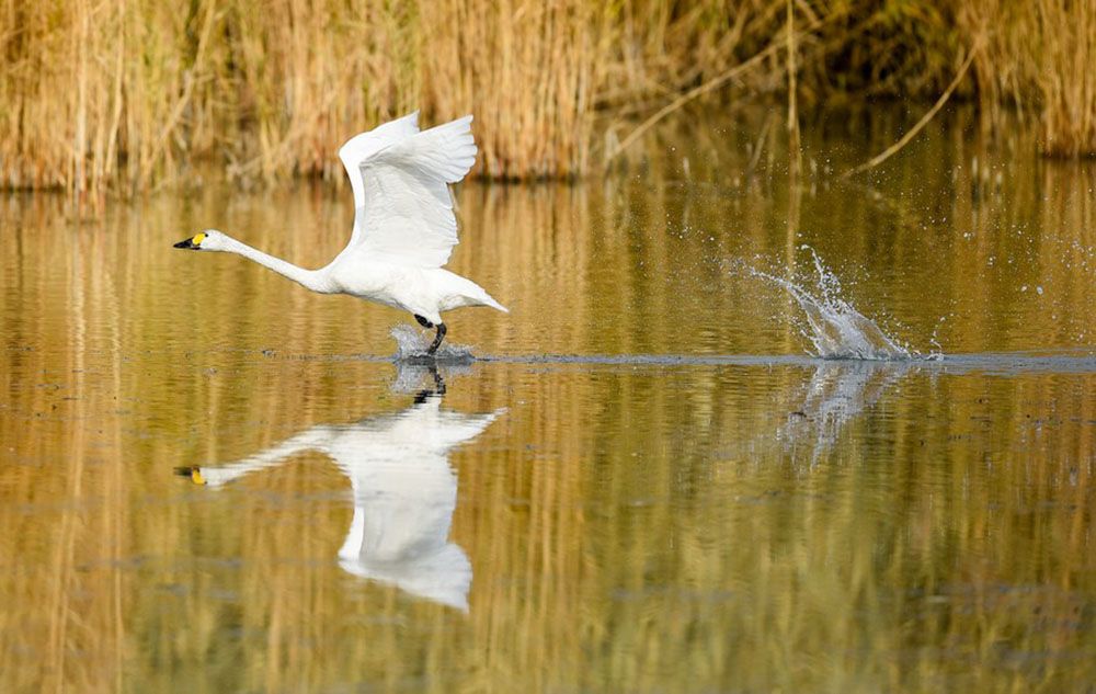 经过不断努力,如今乌梁素海水质好转,由劣V类提高到整体V类、局部IV类,每年有大量鸟类迁徙经过乌梁素海或在此繁殖,湖区记录到的鸟类达到260多种。图为天鹅在乌梁素海水面上嬉戏。(图片来源:新华社)