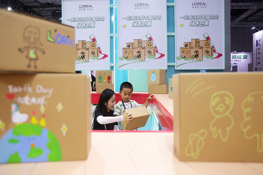 6月11日,100%可降解的绿色包裹吸引观众。(图片来源:中新社)