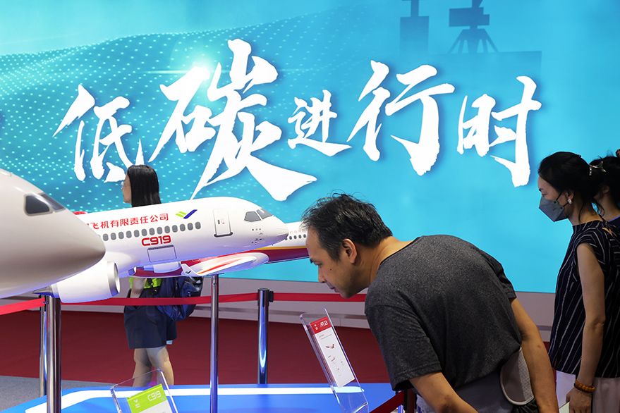 6月11日,中国商飞的低碳绿色规划吸引观众。(图片来源:中新社)
