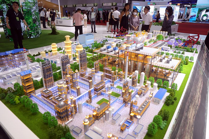 6月11日,中国石化百万吨ccus示范工程模型吸引参观者。(图片来源:中新社)