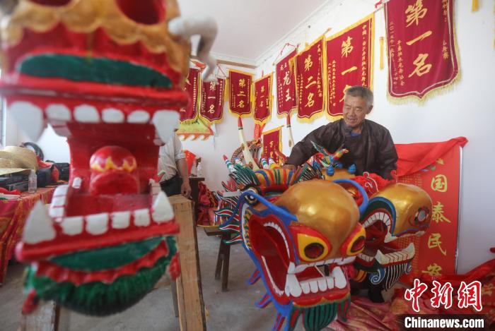 一位同行正在给小龙头上色。(图片来源:央广网)