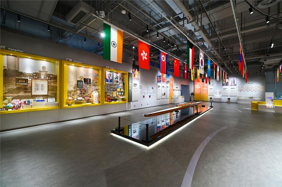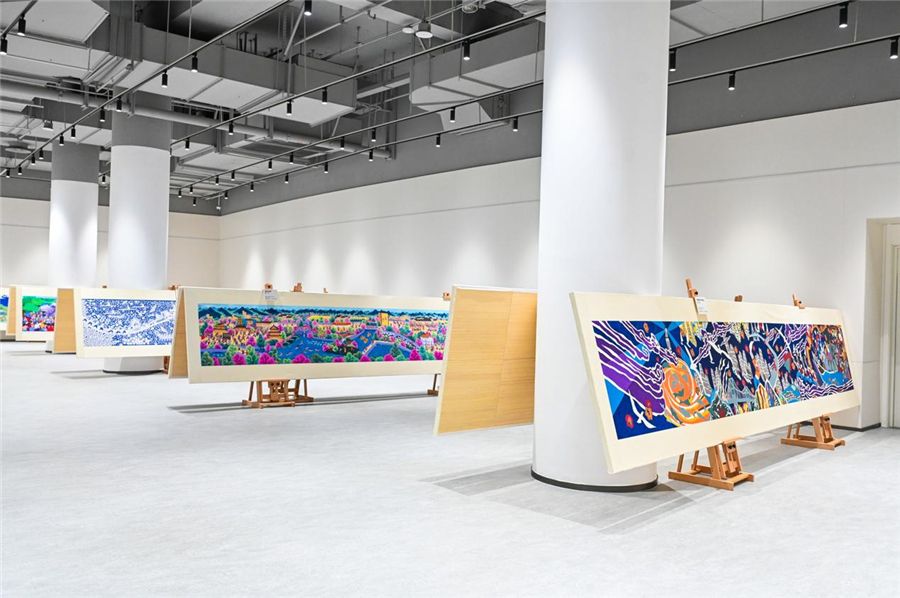 6月13日,“浙里石榴红 共绘亚运梦”民族(农民)画长卷捐赠仪式在位于浙江杭州的杭州亚运会博物馆举行。