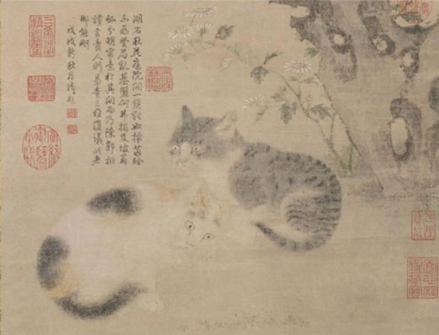 明宣宗朱瞻基《花下狸奴图轴》(局部)