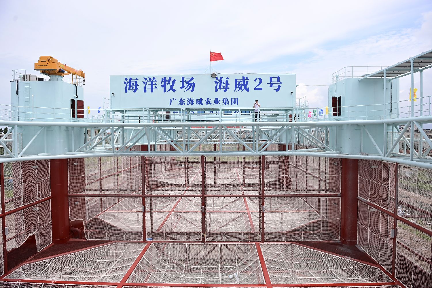 即将下水投产的“海威2号”半潜桁架式渔业智能养殖平台。(图片来源:中新社)