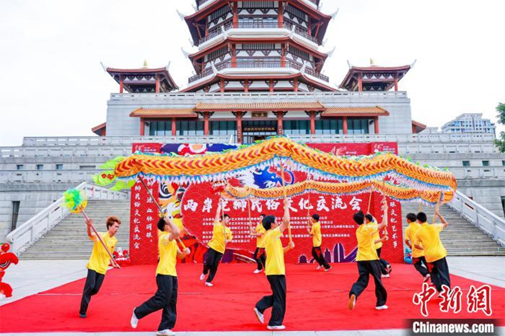 第十五届海峡论坛·海峡同根文化艺术节之两岸龙狮民俗文化交流会在厦门集美新地标集美塔拉开帷幕。(图片来源:钟欣 摄)
