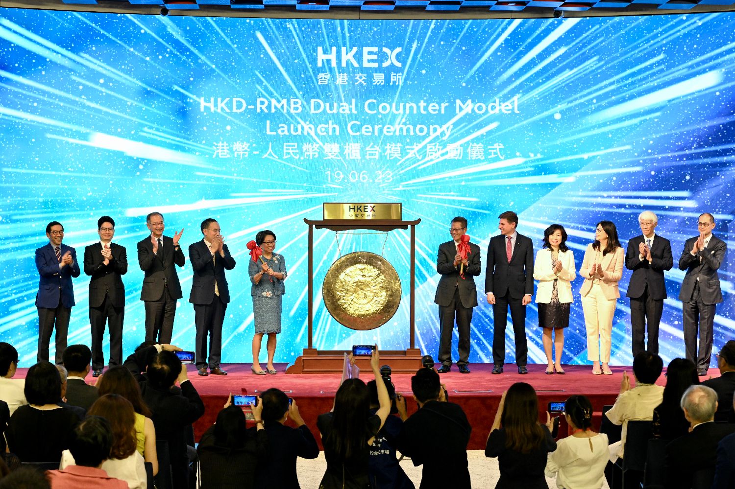 6月19日,香港交易所举办“港币——人民币双柜台模式”启动仪式,庆祝双柜台模式正式推出。