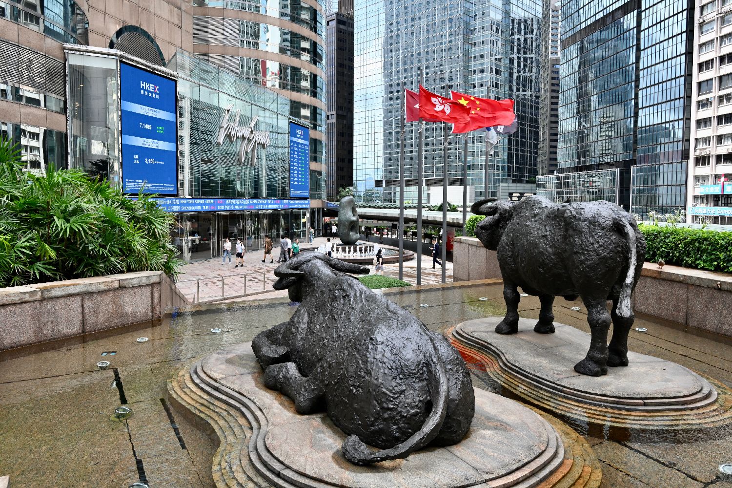 据了解,已获批的双柜台证券包括腾讯、阿里巴巴、京东、香港交易所、中银香港、李宁、安踏、新鸿基地产等。图为香港交易广场的铜牛雕塑。