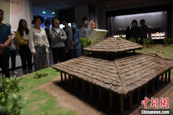 5月18日,参观者在三门峡庙底沟博物馆内参观仿造版仰韶时期的房屋。(图片来源:中新网)
