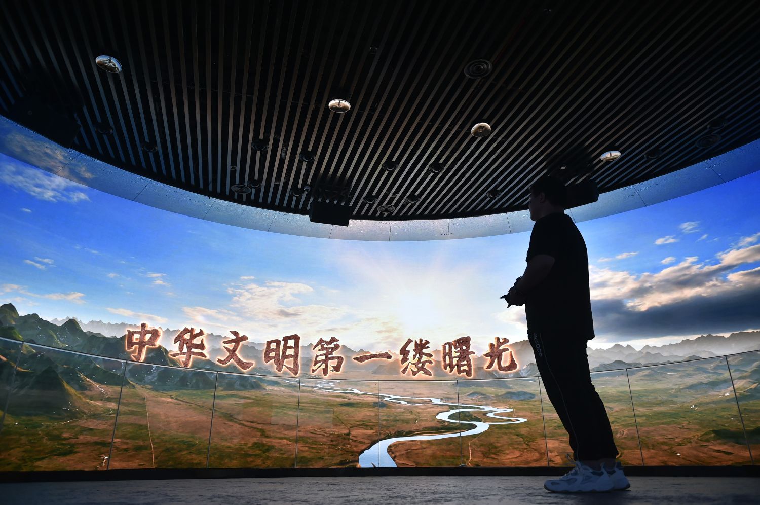 6月22日拍摄的三门峡庙底沟博物馆内的环幕影院。(图片来源:新华社)