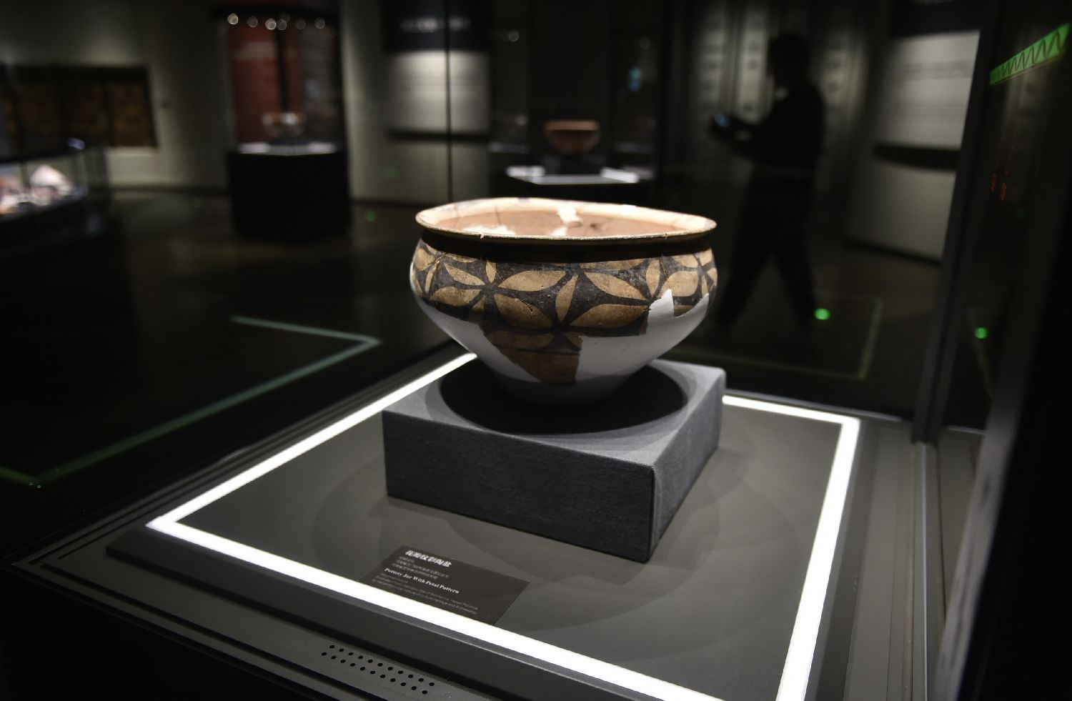 6月22日拍摄的三门峡庙底沟博物馆内的花瓣纹彩陶盆。(图片来源:新华社)