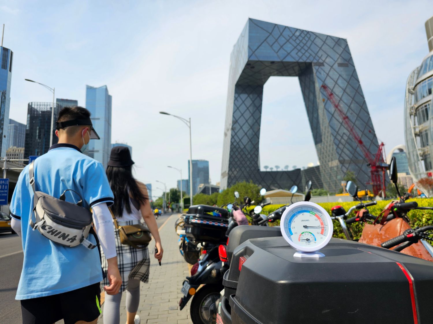6月23日,温度计显示北京室外气温超过40摄氏度。(图片来源:新华社)