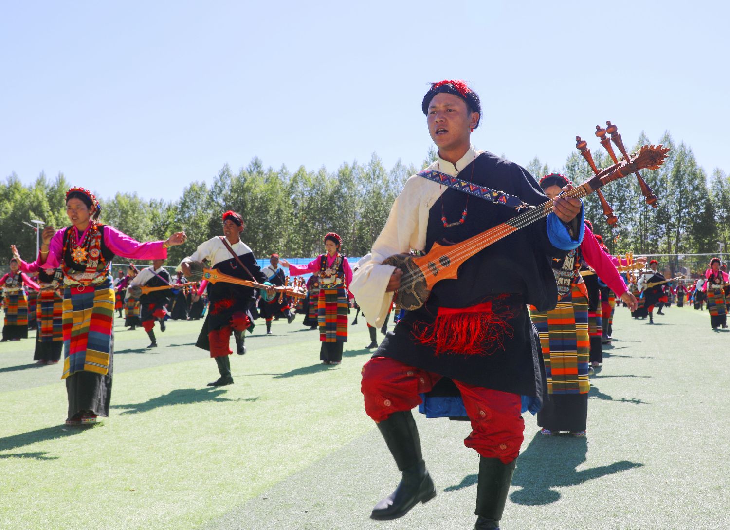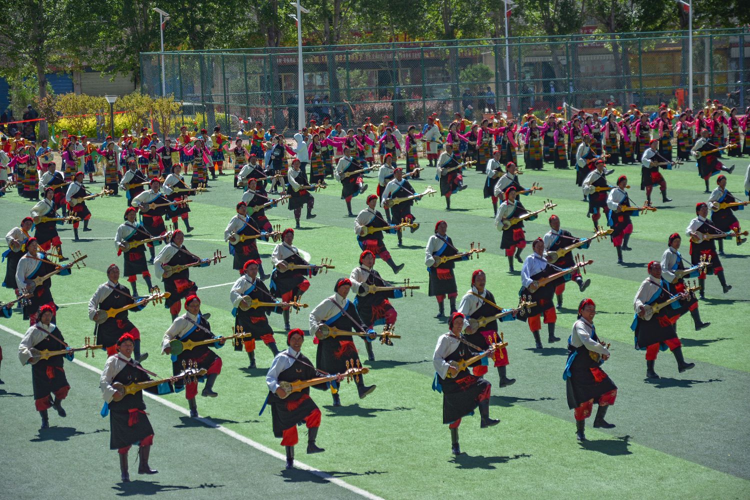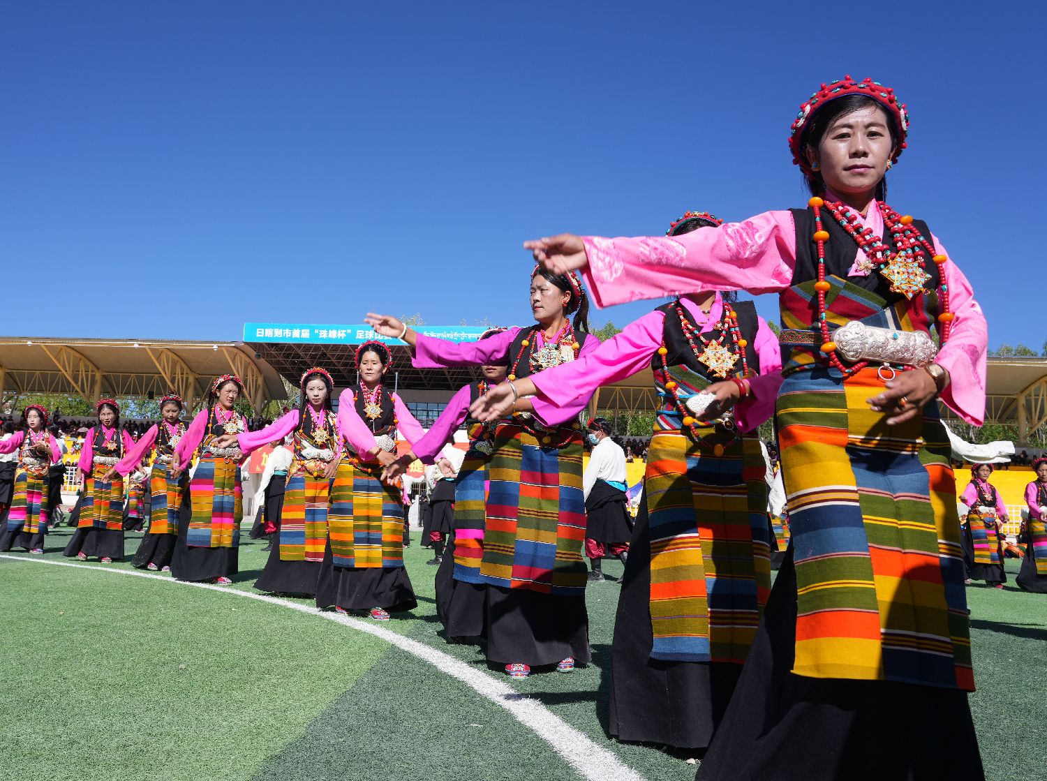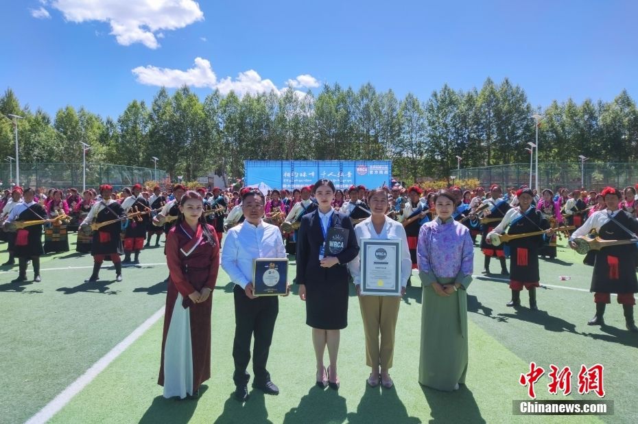6月25日,“相约珠峰·千人弦音”西藏日喀则大型非遗歌舞展演在日喀则上海体育场举行。经世界纪录认证(WRCA)官方审核,该活动成功创造“最大规模的日喀则非遗民俗舞蹈表演”世界纪录。(图片来源:本文图片除标注外均自中新社)