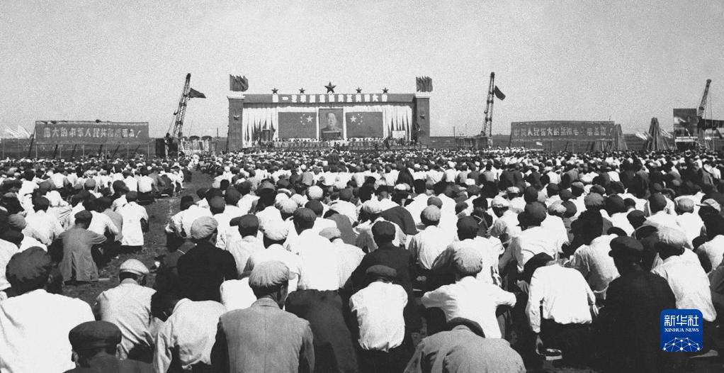 1953年7月15日,中国第一座汽车厂——第一汽车制造厂在吉林省长春市奠基,中华人民共和国汽车工业开始起步。这是一汽奠基典礼大会会场(资料照片)。(图片来源:新华网)