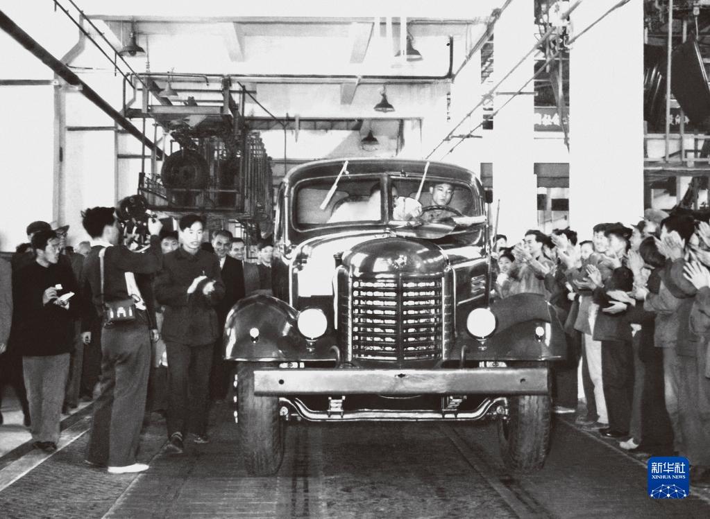 1956年7月13日,第一辆解放牌汽车驶下装配线(资料照片)。(图片来源:新华网)