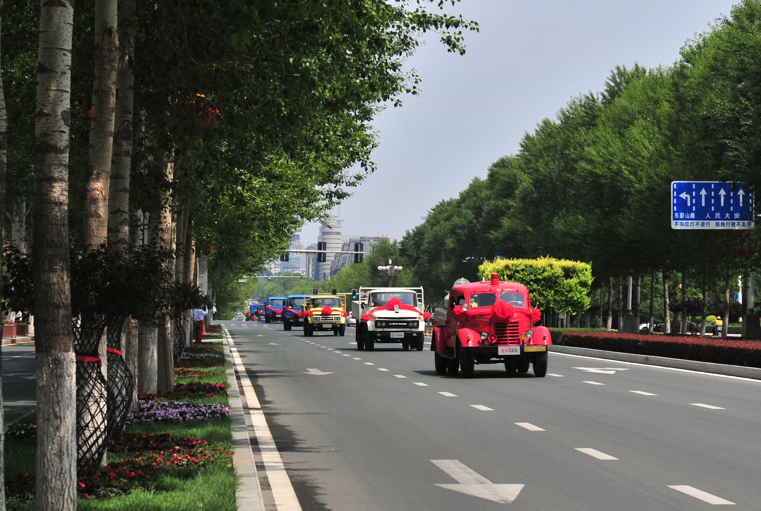巡游车队披红挂彩。(图片来源:央广网发/一汽解放供图)
