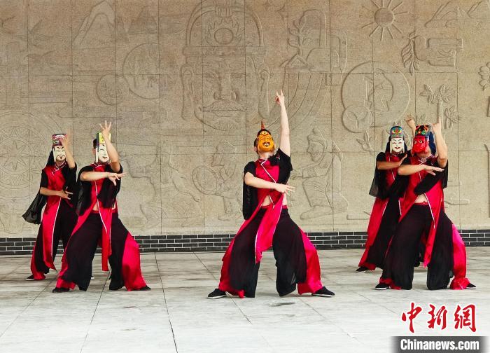 舞蹈《群傩闹分龙》表演现场。(图片来源:中新网发/环江县融媒体中心供图)