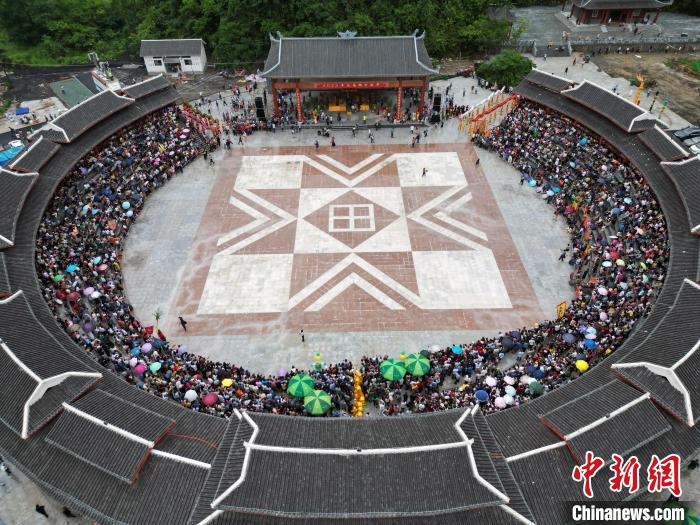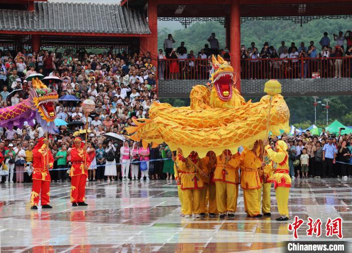 现场演绎“五龙布雨”民间传说。(图片来源:中新网发/环江县融媒体中心供图)