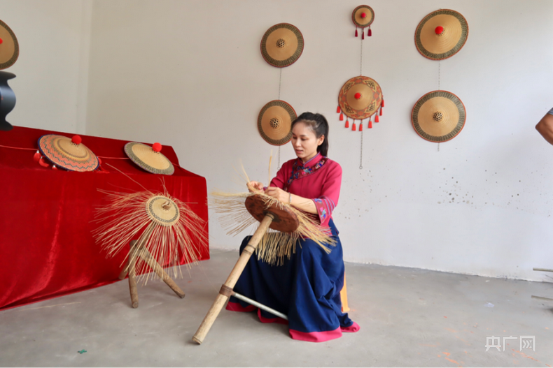 活动现场进行的花竹帽非遗技艺展示。(图片来源:央广网)