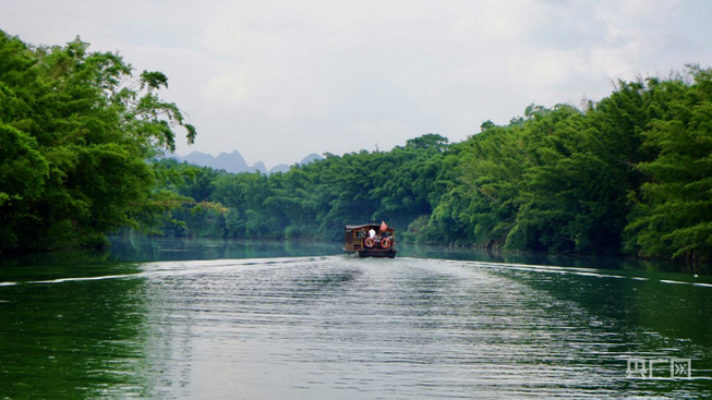 广西柳州市鹿寨县中渡古镇林木郁郁葱葱,湿地水草丰茂,洛江清澈见底,吸引了许多游客前来观光、避暑、休闲、度假。(图片来源:央广网)
