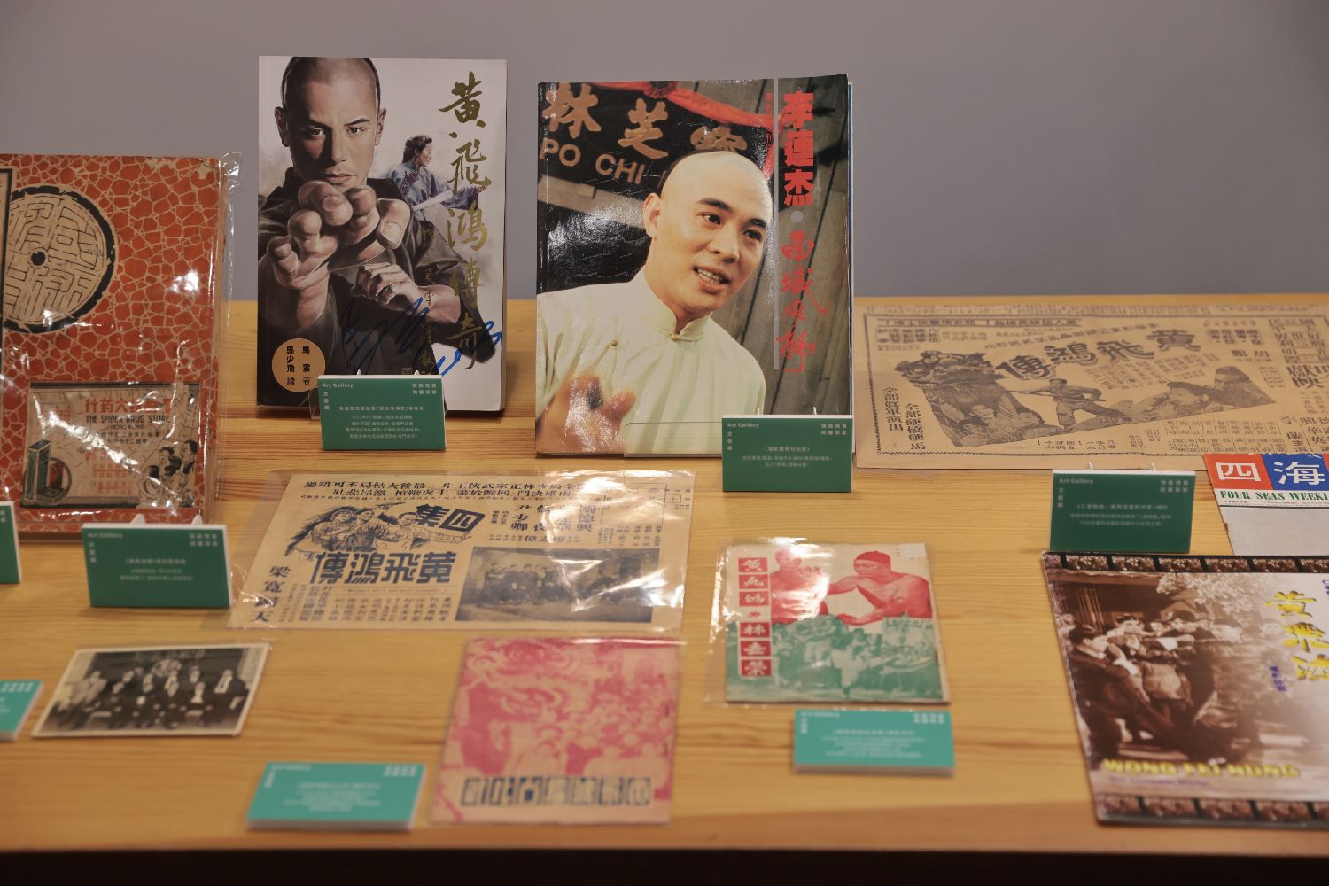 书展中与黄飞鸿及中国功夫有关的书籍及海报展览。(图片来源:香港中通社)