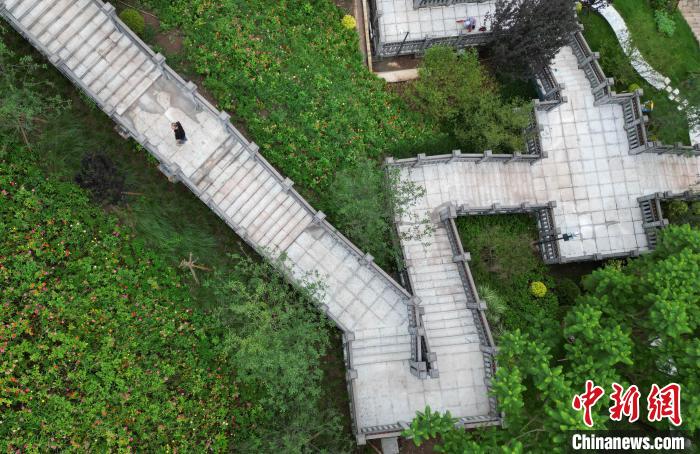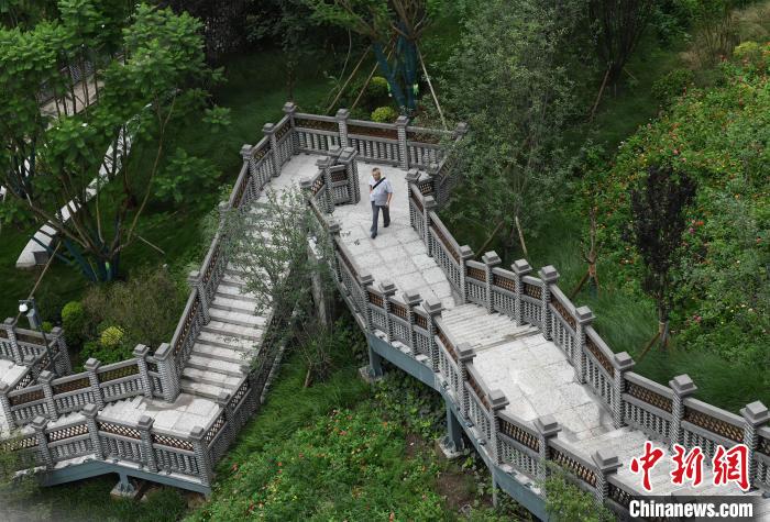 图为航拍重庆谢家湾轨道站步道。(图片来源:中新网)