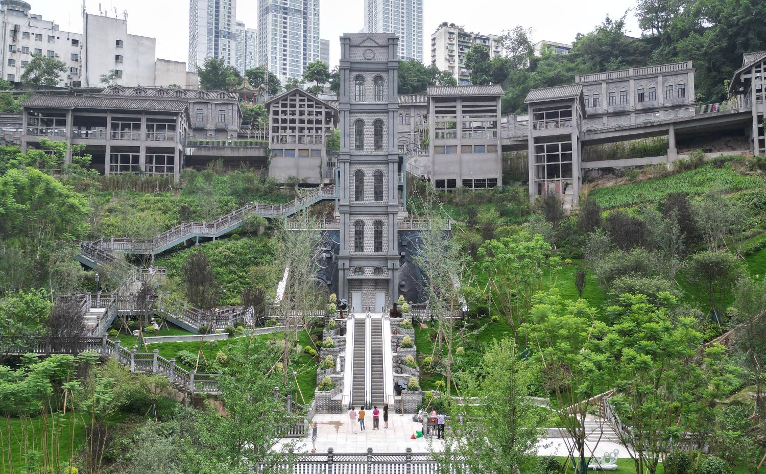 图为依山而建的重庆谢家湾轨道站步道。(图片来源:中新网)