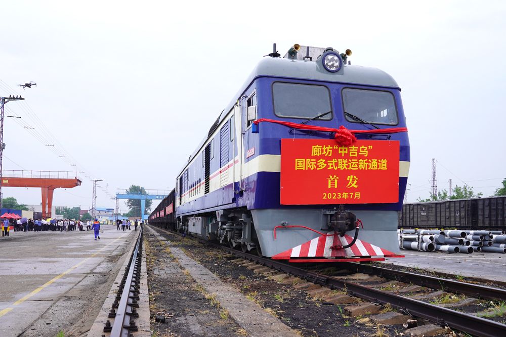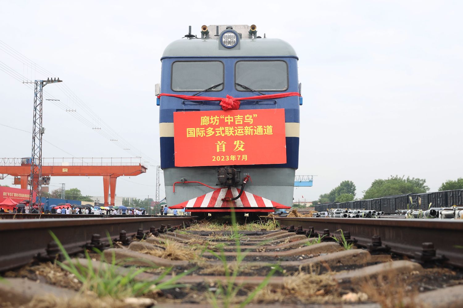 廊坊“中吉乌”国际多式联运新通道首发仪式7月4日在河北廊坊举行。列车采用“铁路—公路”国际多式联运方式启程开赴乌兹别克斯坦首都塔什干。
