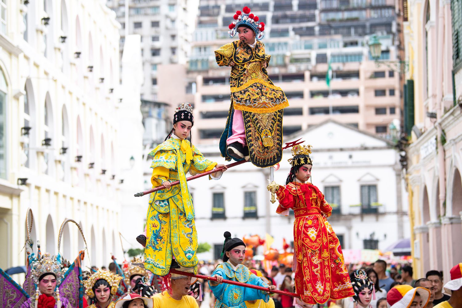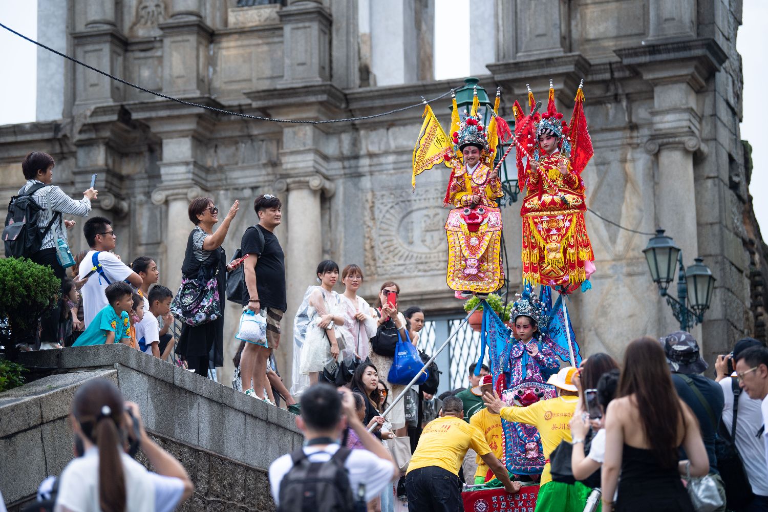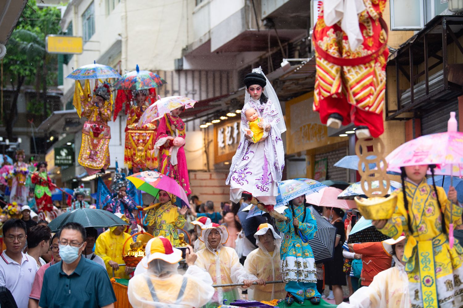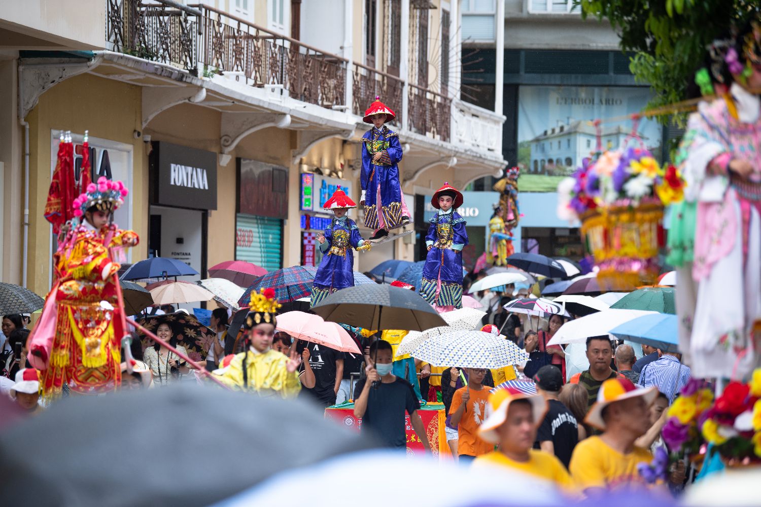 7月4日,澳门大三巴哪吒庙举办哪吒飘色巡游。农历五月十八日(7月5日)是哪吒诞,澳门气象局在当地时间4日下午一度发出黄色暴雨警告,但无碍表演者、围观市民及旅客的热情。巡游队伍自大三巴哪吒庙前地出发,途经大三巴街、议事亭前地、花王堂前地等。