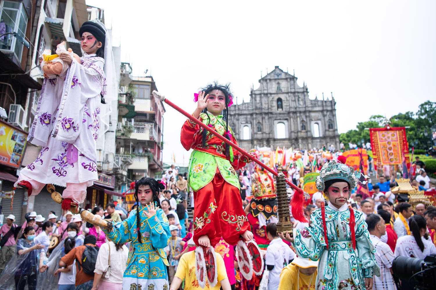 7月4日,澳门大三巴哪吒庙举办哪吒飘色巡游。(图片来源:香港中通社)