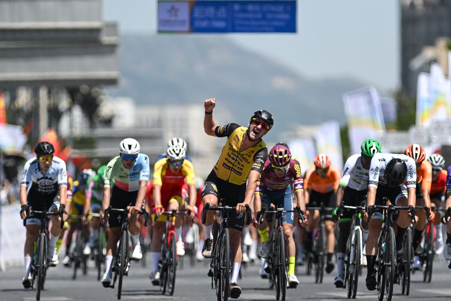 比利时塔特雷托-艾索雷斯车队选手蒂莫蒂·杜邦夺得赛段冠军。(图片来源:中新社)