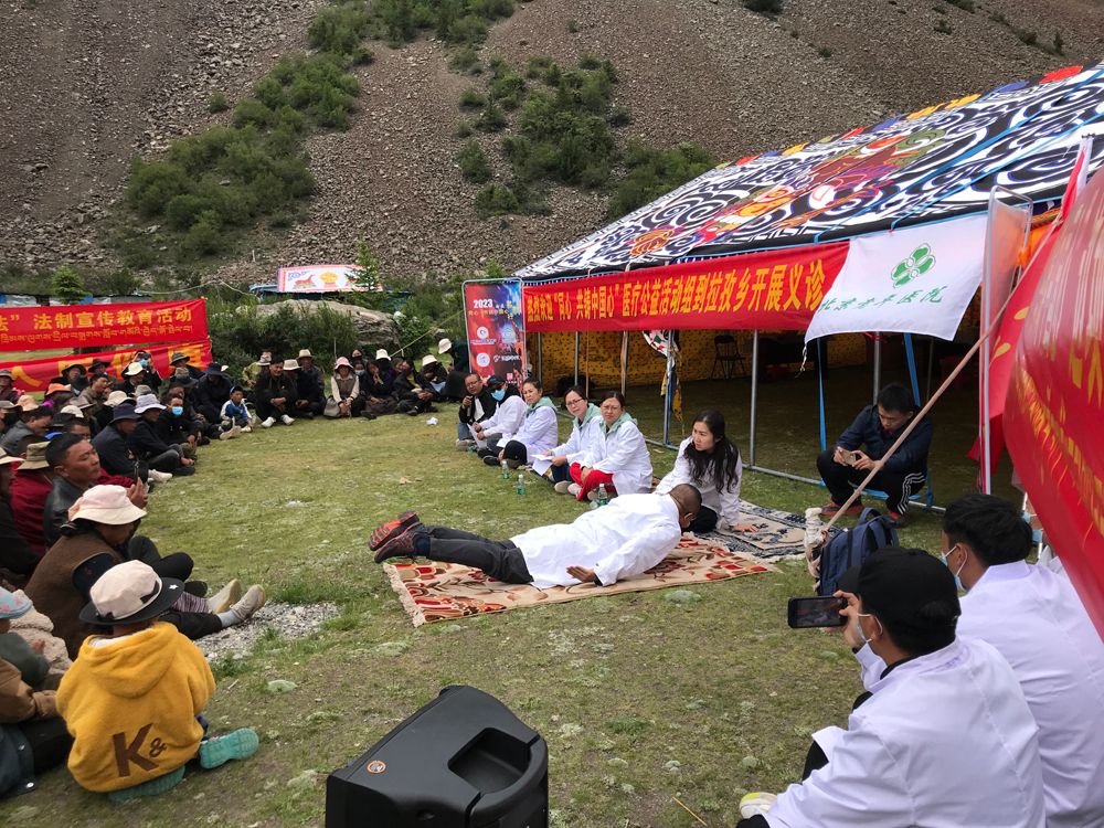 7月9日,来自北京的6位医疗专家在西藏自治区昌都市边坝县拉孜乡开展“健康大讲堂”活动,内容涵盖肺结核防治、糖尿病管理、高血压管理、老年综合征管理、腰椎间盘突出诊断及治疗等多种疾病的医疗健康知识。图为义诊现场。(图片来源:中新社)