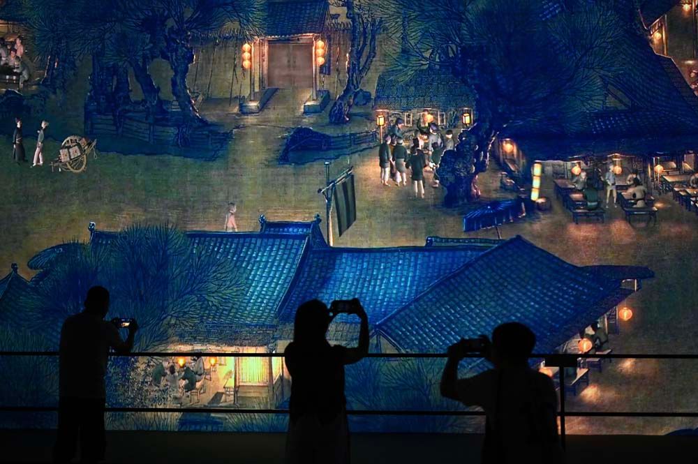 为了让文物“活”起来,让历经时光打磨的国宝再次焕发光彩,创作团队邀请史学专家对张择端版《清明上河图》画面中人物的服饰、肢体语言、建筑风格等都进行了指导与研究,结合声光电技术,形成会动的《清明上河图》。(图片来源:《广西日报》/广西云客户端)