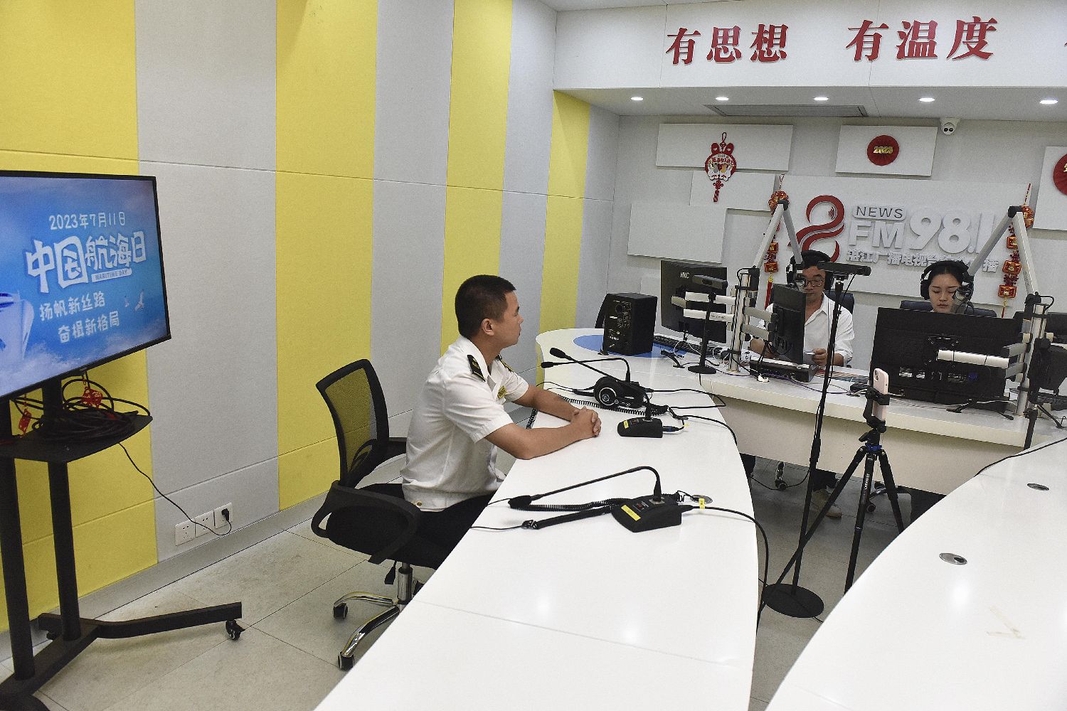 广东湛江海事局在中国航海日之际联合湛江市广播电视台,开展了“中国航海日”直播活动,向社会大众科普航海知识、分享航海故事。(图片来源:《中国交通报》)
