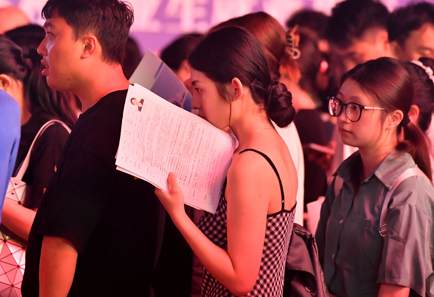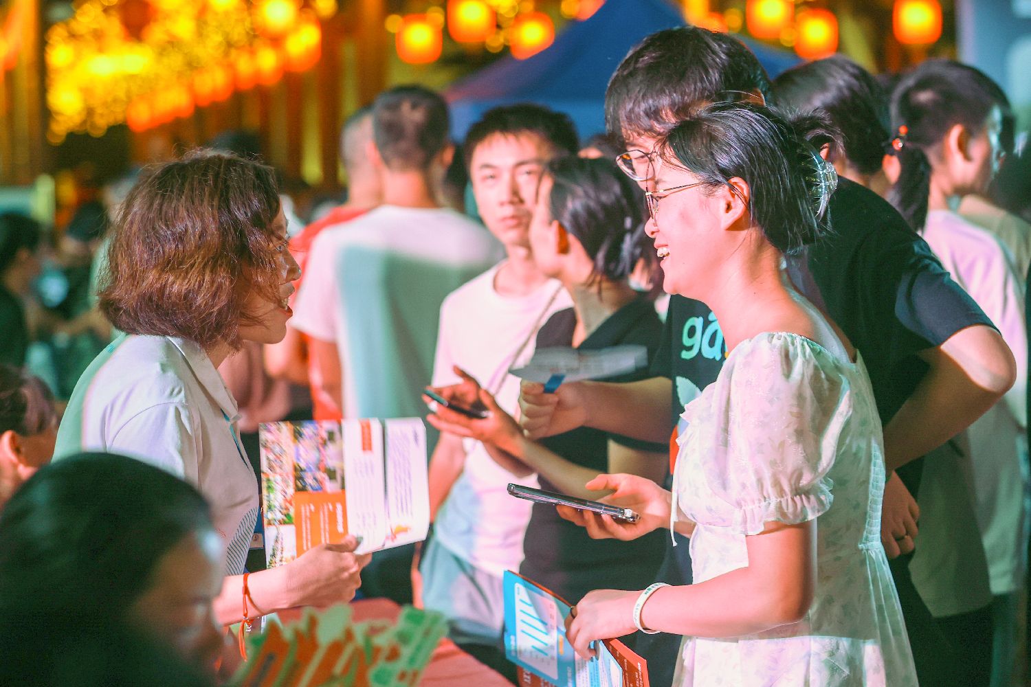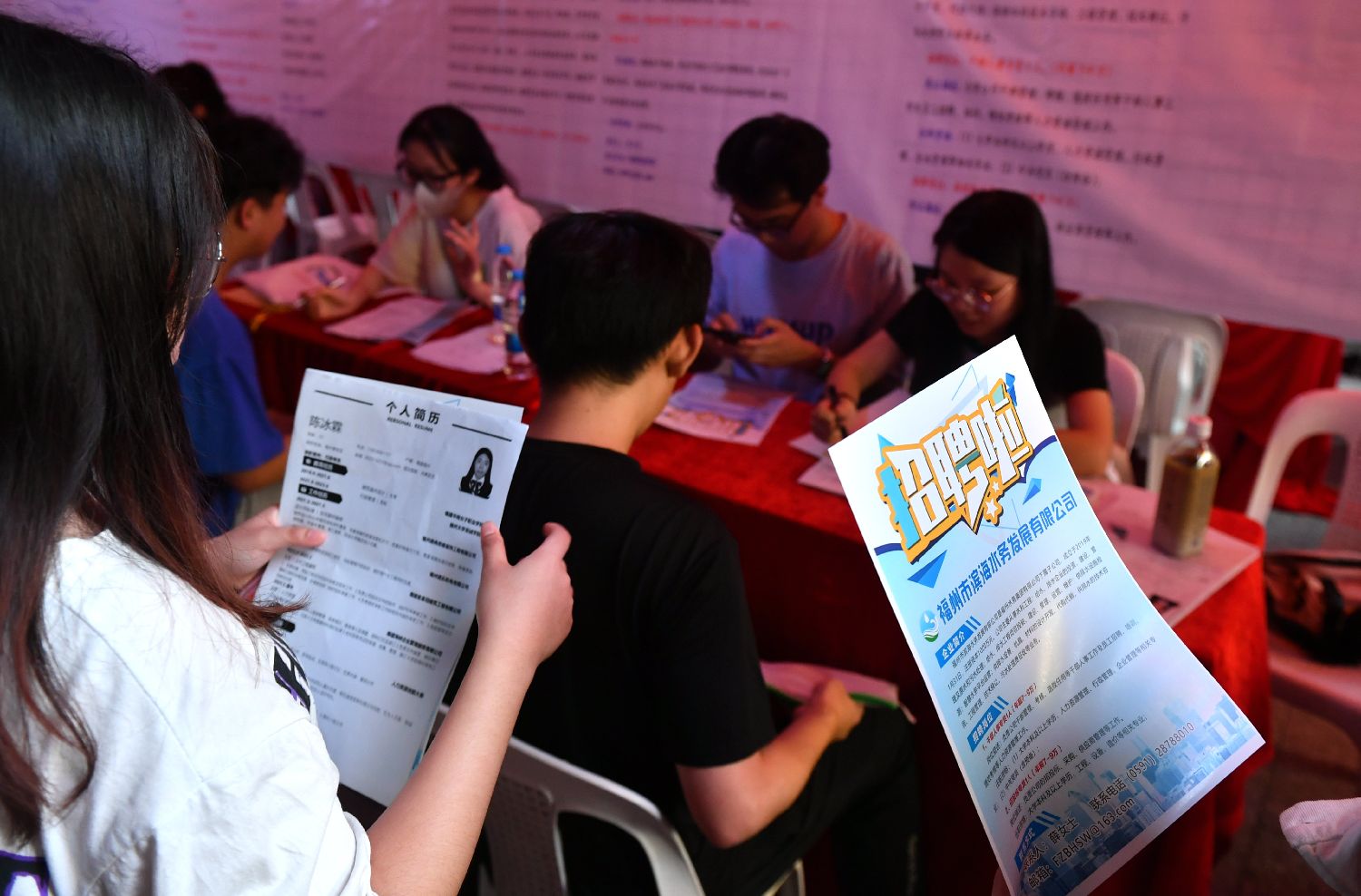 7月8日晚,2023年福州市高校毕业生就业夜市国有企业专场招聘会在福州宝龙广场举行。(图片来源:中新社)