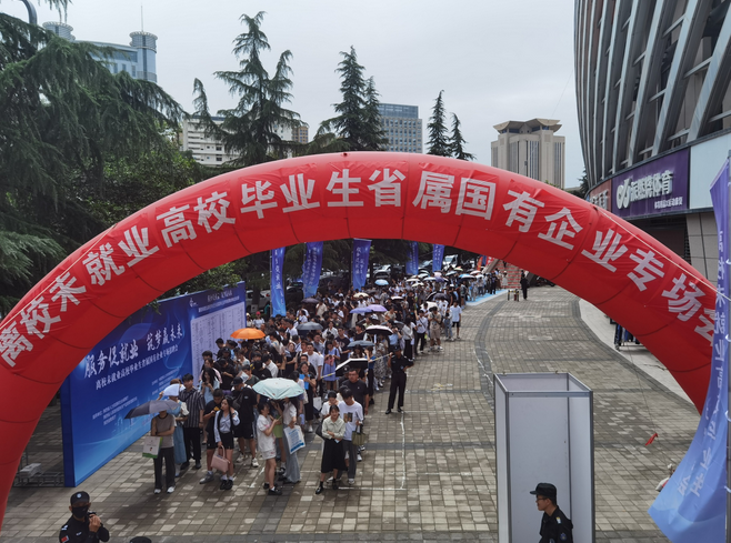 7月14日,“服务促就业 筑梦赢未来”离校未就业高校毕业生省属国有企业专场招聘会在陕西省体育场举行。(图片来源:央广网)