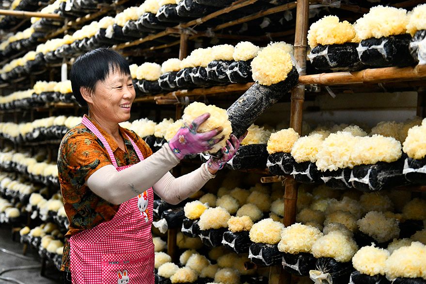 近日,中国多地食用菌基地,满棚的食用菌个头饱满、形状各异,长势喜人。近年来,各地重点建设食用菌产业园,壮大食用菌种植规模,促进农民增收,助力乡村振兴。