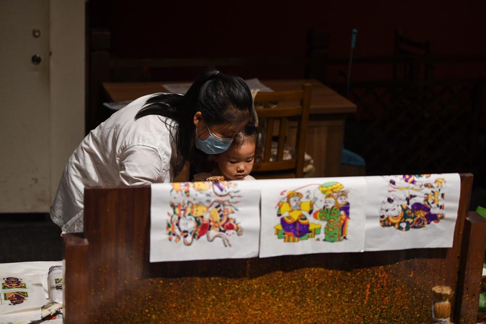 暑期,众多市民走进河南省开封博物馆,感受中华优秀传统文化的魅力。针对暑期青少年群体较多的情况,开封博物馆精心策划和开展主题夏令营、研学等文化活动,丰富青少年暑期生活。图为7月14日,游客在开封博物馆体验朱仙镇木版年画手工课。(图片来源:新华社)