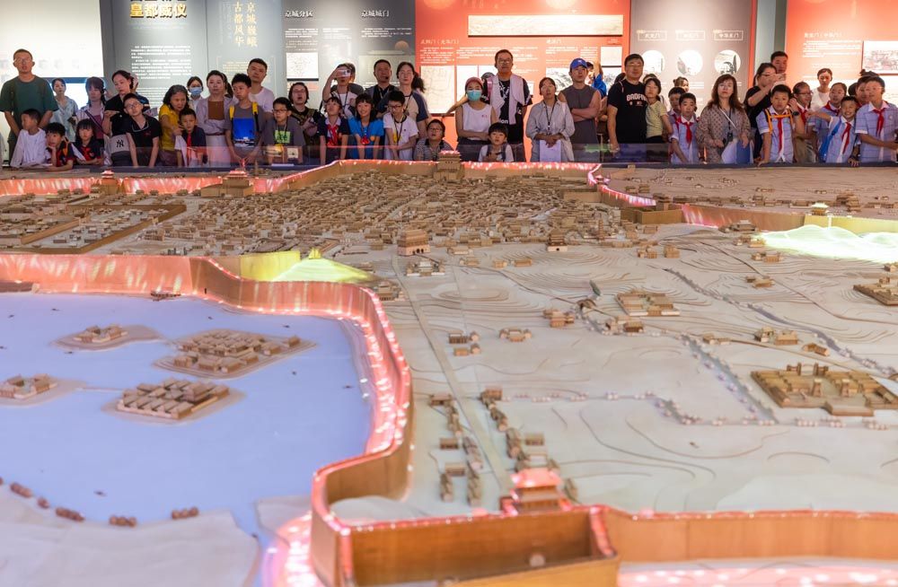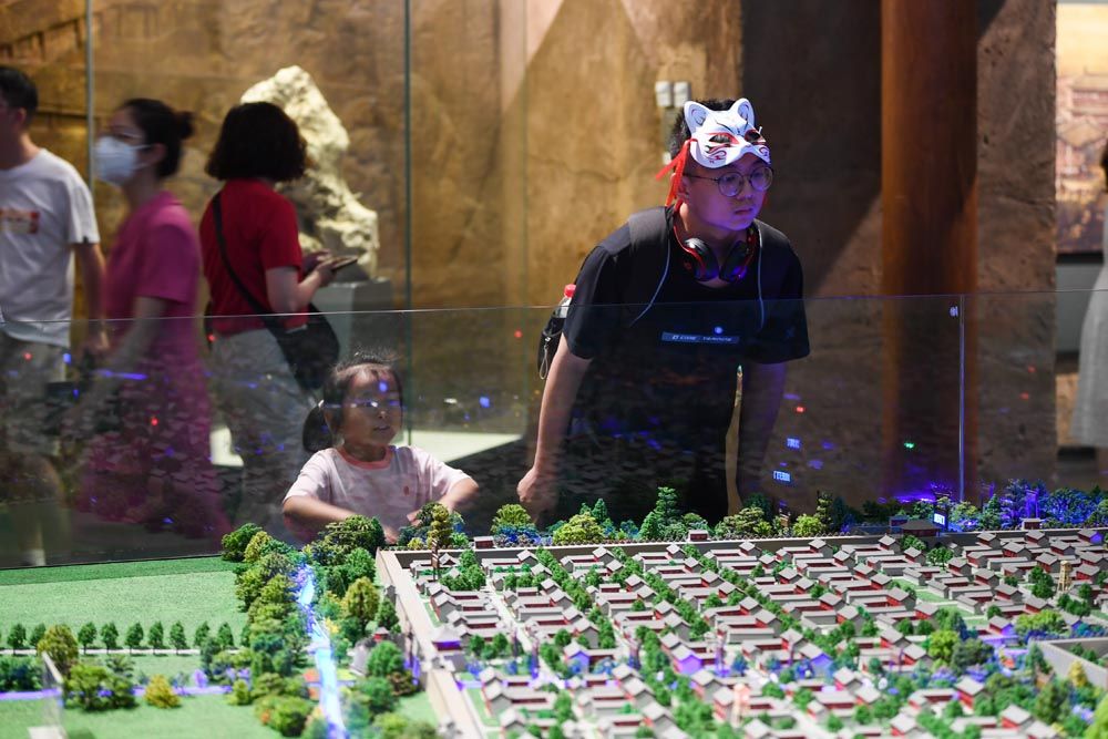 7月16日,江苏南京民众在城墙博物馆内参观。(图片来源:中新社)