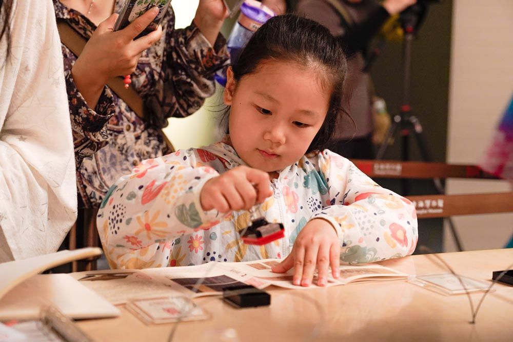 北京时间7月14日晚,小朋友在上海博物馆的展厅内收集印章。暑假期间,上海博物馆于7月7日至8月20日的每周五增设夜场,开展“博物馆奇妙夜”活动。(图片来源:新华社)