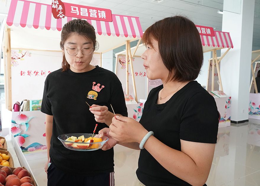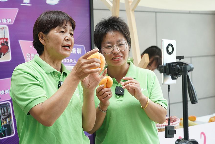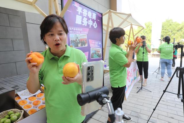 本届鲜桃季采用“线下+线上”双模式展开,举办发布会、“土特产”市集、直播带货等活动,助力大桃销售。(图片来源:《北京日报》)