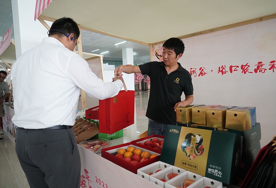 7月18日拍摄的2023北京·平谷鲜桃季“土特产”市集现场。