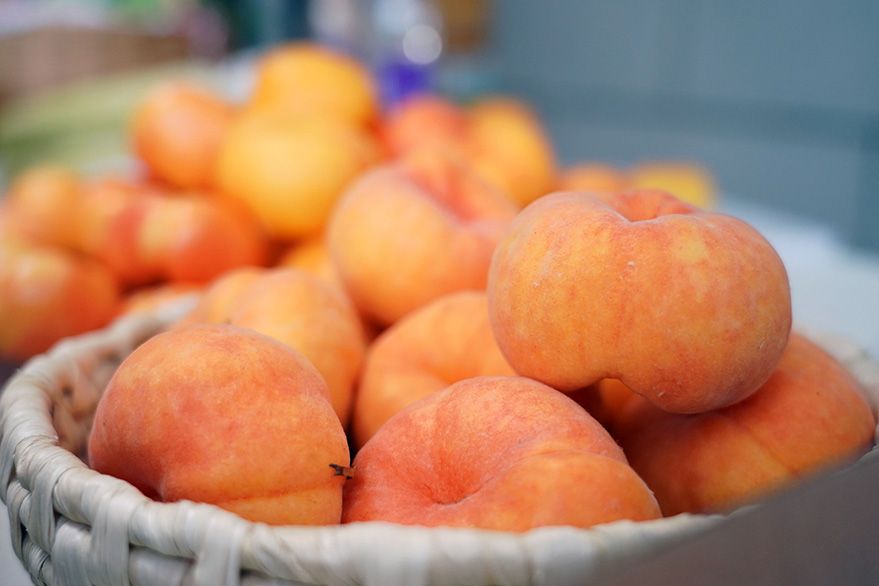 7月18日在2023北京·平谷鲜桃季“土特产”市集现场拍摄的桃子。