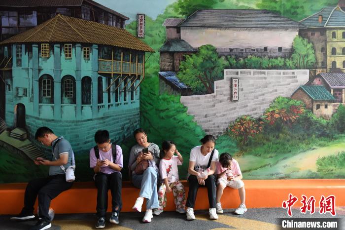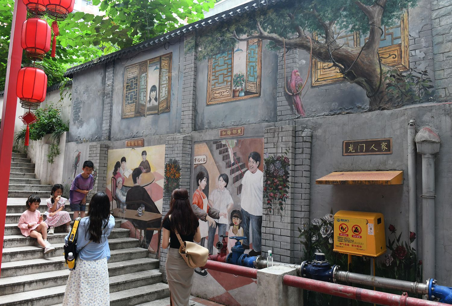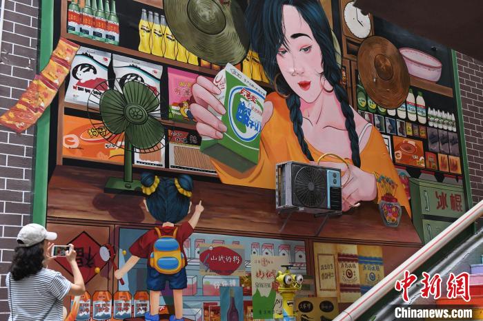 巨型涂鸦展现出老街风情,吸引市民在此玩耍、休息。(图片来源:中新网)