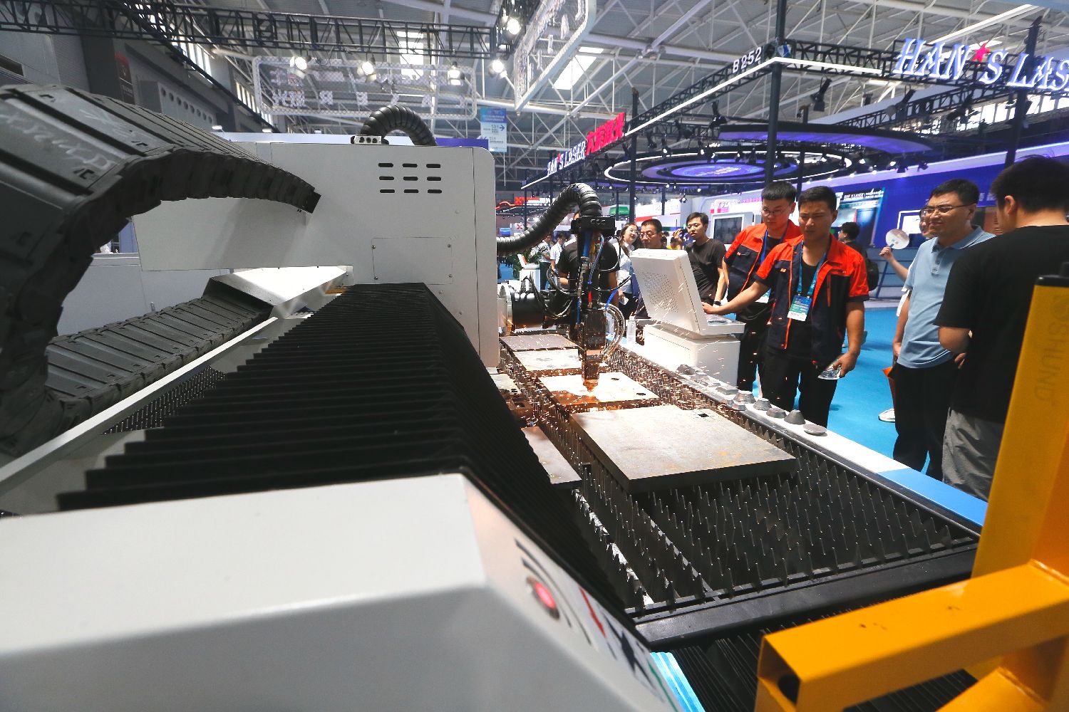 7月18日,参观者在2023青岛国际机床展览会上了解激光切割设备。(图片来源:新华社)