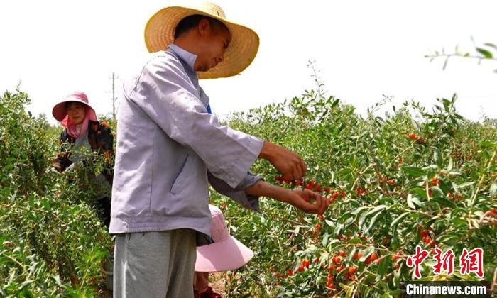 进入7月,新疆尉犁县红枸杞进入全面采摘期。果农们不误农时,正忙碌地采摘着果实。(图片来源:中新网)