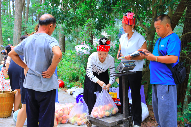 时下正是桃子成熟的季节,贵州省黔东南州剑河县岑松镇塘脚村的妩阳红桃示范基地,饱满鲜红的桃子压弯枝头,村民正在销售桃子。(图片来源:北京央广网)
