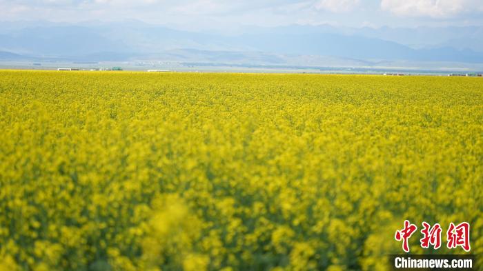 昭苏县素有“中国油菜之乡”的美誉。今年,昭苏县种植油菜25.8万亩,进入县域后,公路两边随处可见成片的油菜花,随着地势不同,或平整或连绵起伏,金色耀眼如一片片绚烂的花毡。(图片来源:中新网)
