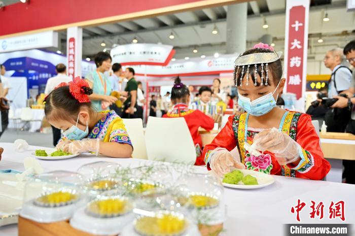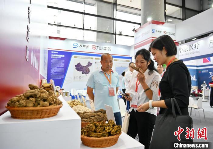 中医药展示区药香悠悠,吸引民众参观。(图片来源:中新网)
